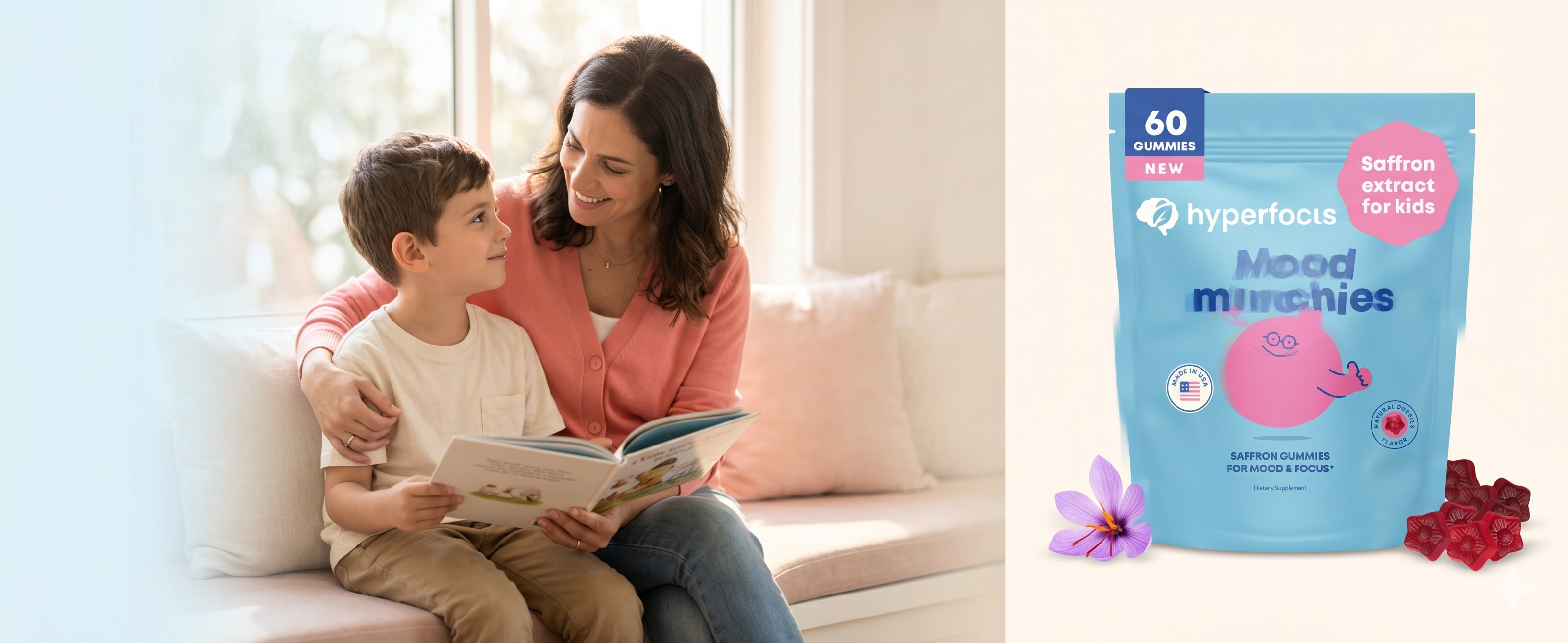 הפעולה הזו "מעירה" את האיזון הטבעי מבפנים ומאפשרת למוח של הילד לתפקד במיטבו - רגוע, ממוקד וחד יותר. בזכות מינון קליני של זעפרן, פרח התשוקה, GABA והיפריקום, הילד חוזר להיות עצמו - רק מאוזן יותר.